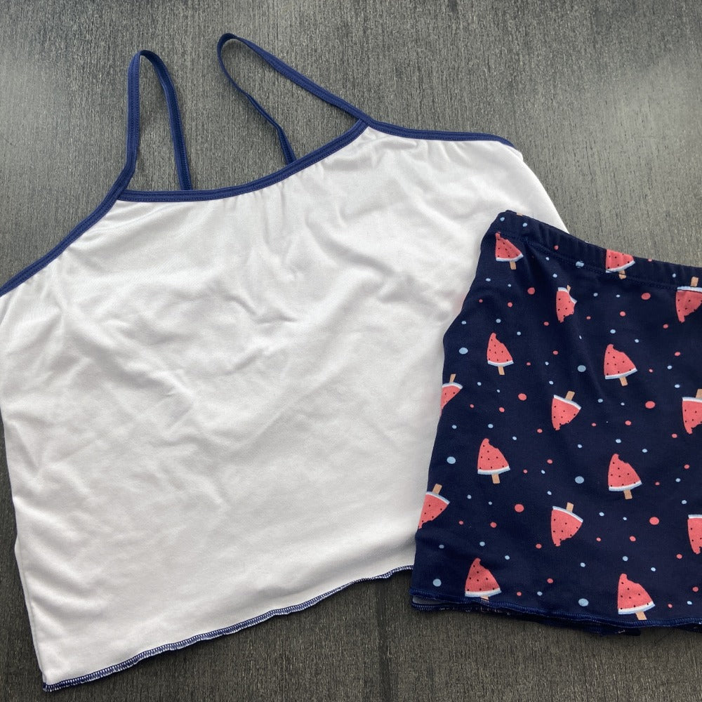 Seu cropped branco com aviamentos que combinam com a estampa do short, é o diferencial deste modelo. Você vai amar!